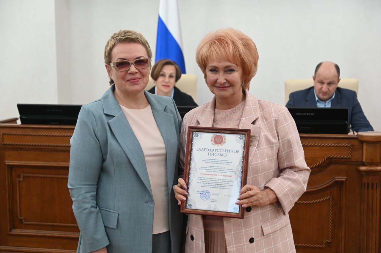 Председателю комитета Алтайского краевого Законодательного Собрания по социальной защите и занятости населения Солнцевой Ирине Валентиновне, кандидату медицинских наук, депутату краевого парламента шести созывов, с 2000 года